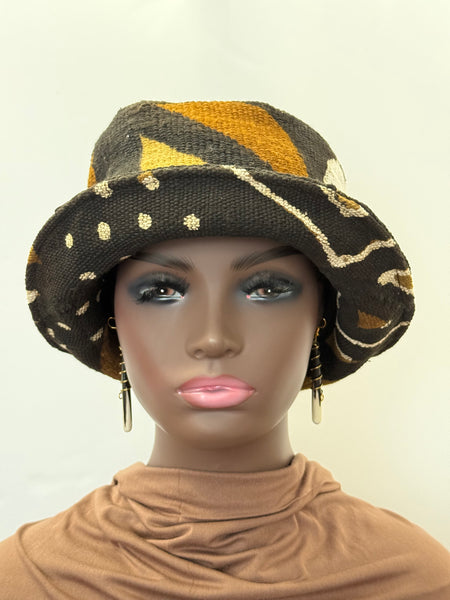 Experience the Mud-Cloth African Print Trim Bucket Hat, a fashionable and practical headpiece that offers sun protection with a vibrant, culturally-rich twist. Featuring a solid-colored base and accentuated with an eye-catching band of traditional African print, it adds personality and charm to everyday wear. Please note that trims may vary due to the handmade and assorted nature of the product. Each hat is truly one-of-a-kind and vibrant, showcasing a colorful African print trim and coordinating buckle for a stylish accent. Its classic bucket shape provides practical sun coverage while remaining lightweight, with a slightly generous fit perfect for thick hair, locs, or protective styles. Admire the rich beauty of this authentic Mali mud cloth. Commonly known as Bogolan or Bògòlanfini, each beautiful cloth is hand woven with premium quality cotton, and dyed with fermented mud by the Bambara women of Mali.